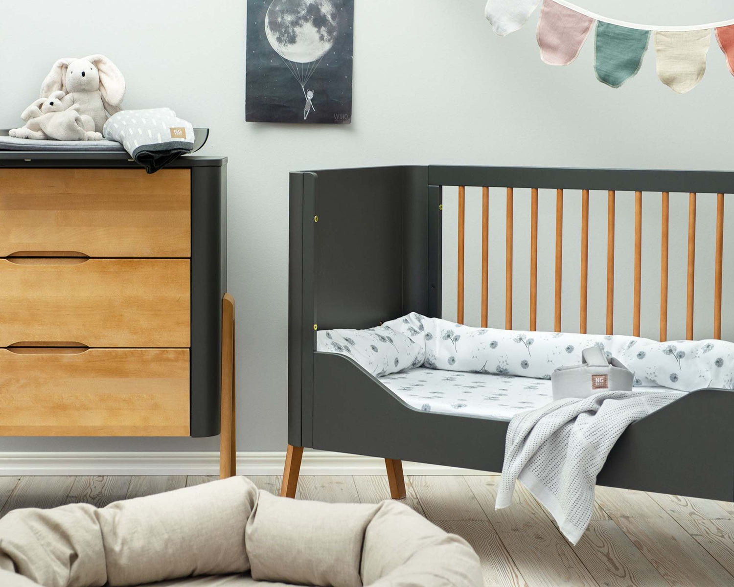 A sleek, natural & sustainable Scandi cotbed